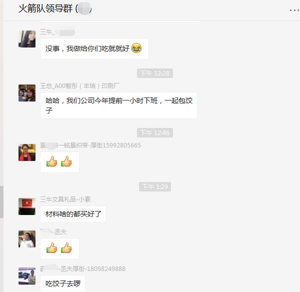 我們王總一大早,就給了我們一個驚喜:今天冬至提前下班,一起包餃子。而且老板親自去買包餃子材料回來,就像一家人一樣。